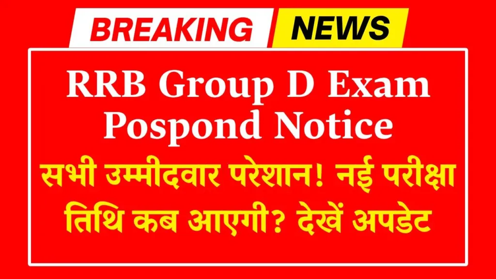 RRB Group D Exam 2025 Pospond Notice: आपको बता दें कि रेलवे ग्रुप डी भर्ती 2025 की परीक्षा को स्थगित कर दिया गया है जिससे बेरोजगार उम्मीदवार नाराज हो गए हैं और वह रेलवे बोर्ड विभाग से निवेदन कर रहे हैं कि रेलवे भर्ती बोर्ड ग्रुप डी की परीक्षा का आयोजन जल्द ही करें.